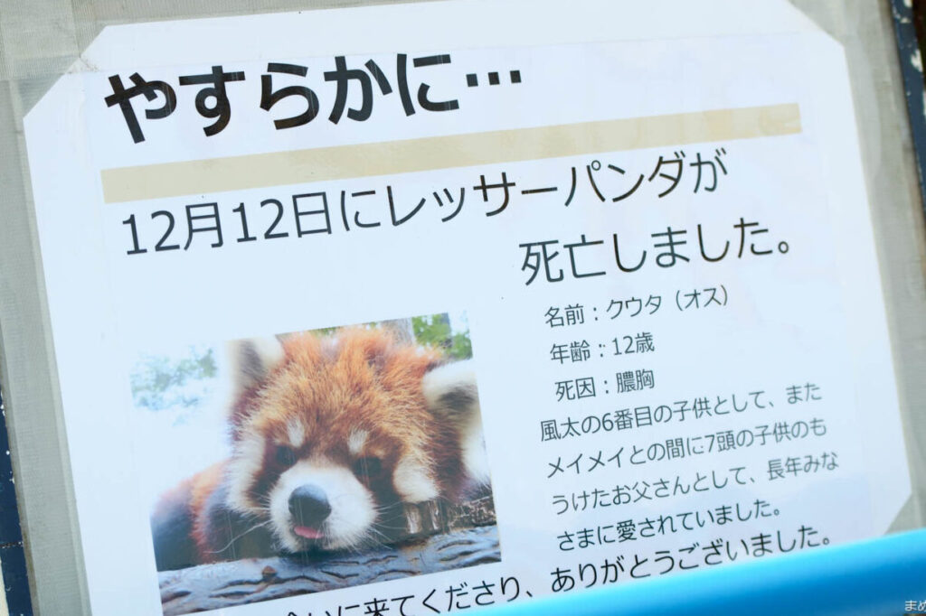 風太の死は私たちにとって大きな損失であり彼の存在は千葉市動物公園の象徴でした。彼が私たちに与えてくれた喜びや思い出は決して消えることはありません。特に子どもたちにとって彼は特別な存在でありその影響は計り知れません。