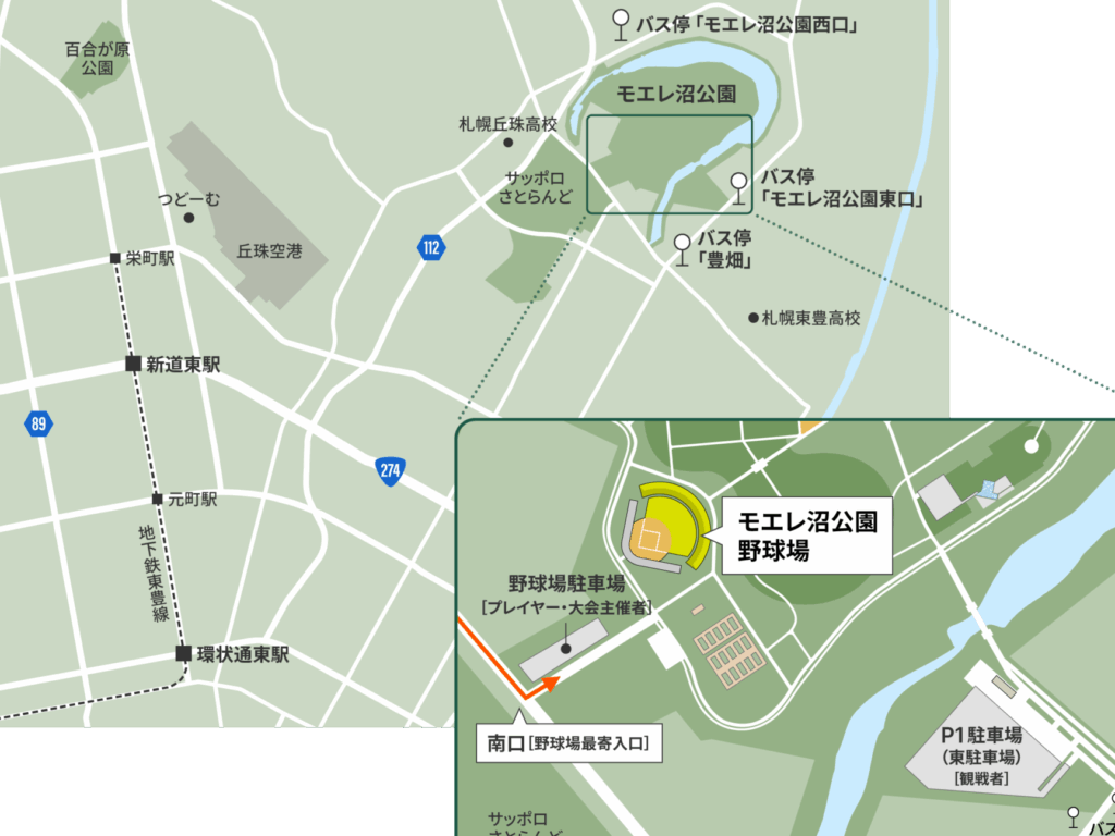 - バス: 札幌市内から「中央バス」または「じょうてつバス」を利用し、「モエレ沼公園前」停留所で下車する。