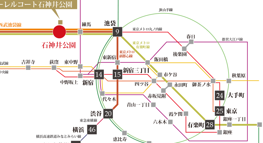 - 都営地下鉄大江戸線:最寄りのバス停から「光が丘駅」までバスで約15分。
