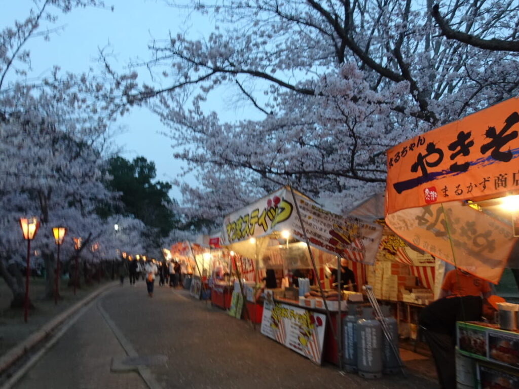 - 桜の季節:4月に入ると、桜の開花に合わせて多くの屋台が出店します。
