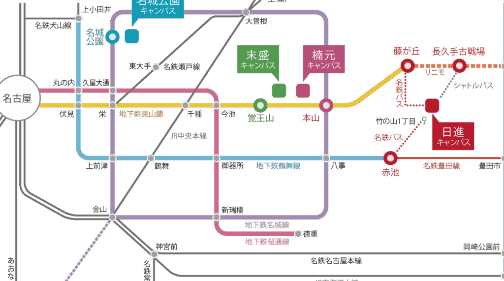愛知学院大学の名城公園キャンパスへのアクセス方法を詳しく確認します。以下の項目から、それぞれの交通手段に応じた情報を提供します。