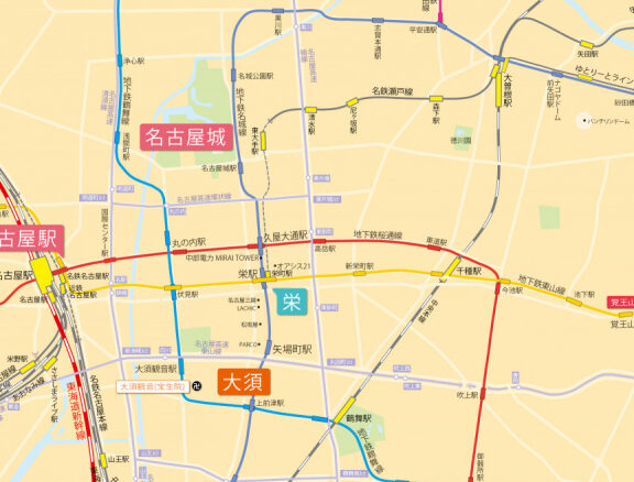 栄駅は名古屋市中心部に位置する重要な交通拠点です。私たちが利用する名古屋市営地下鉄の名城線や東山線が交差しており、移動が非常に便利です。駅周辺には、ショッピングモールや飲食店、観光スポットが集中しており、多くの人々で賑わっています。
