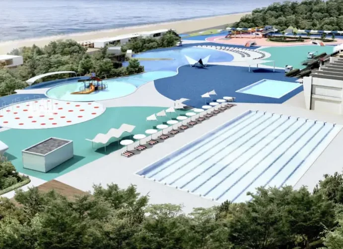 稲毛海浜公園プールには、広々とした基本プールや子供用プールがあります。基本プールの深さは約1.2メートルから2メートルまであり、多様な年齢層に対応しています。また、スライダーも設置されており、さらに楽しむことができます。特に、プールサイドのデッキチェアは、リラックスするための絶好の場所です。