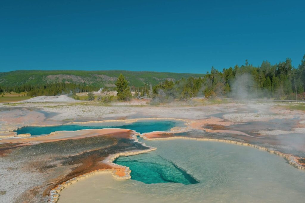 イエローストーン地域では、活発な地質学的プロセスが続いています。地下にはマグマ溜まりが存在し、その熱によって間欠泉や温泉が生成されています。具体的には、
