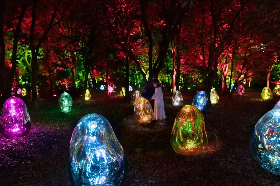 時間帯によっても体験は変わります。日中は自然光が作品を優しく照らし、夜になるとライトアップされ、幻想的な雰囲気になります。このような変化により、何度訪れても新しい発見があります。