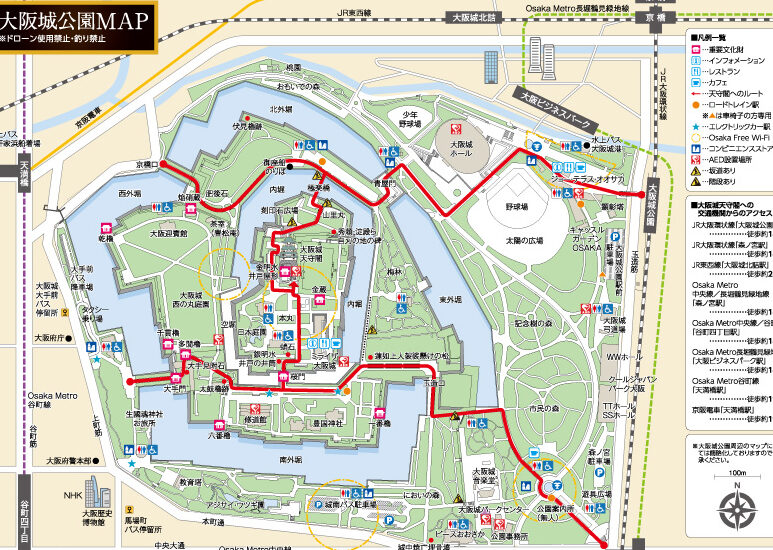 - バス: 大阪市バス(88系統)を利用し、大阪城公園前で下車します。JR大阪駅からもバス便があります。