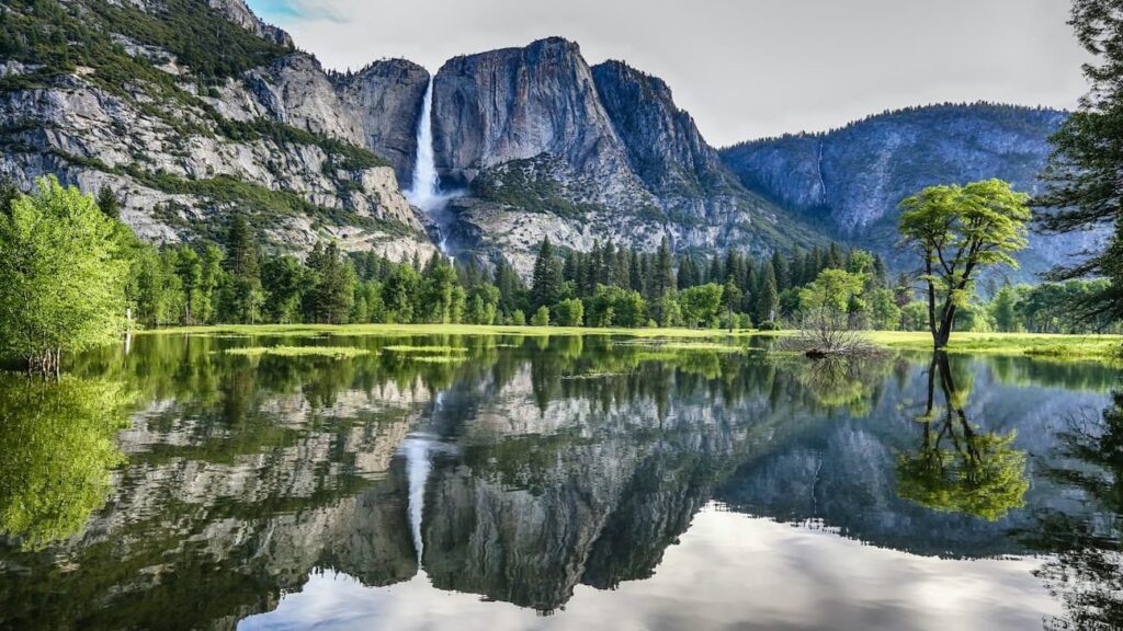 ヨセミテ国立公園は、アメリカ合衆国カリフォルニア州に位置し、広大な自然景観と多様な生態系が魅力的です。この公園は、特にその壮大な花崗岩の崖や滝で知られています。