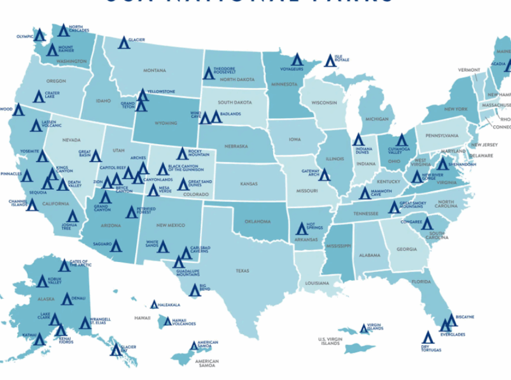 現在、アメリカには63の国立公園があります。これらは次のように分布しています。
