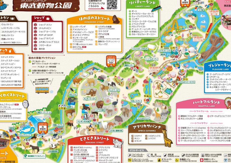 東武動物公園では、多彩なアトラクションが楽しめる。その中でも特に注目すべきは、動物エリアとアミューズメントエリアだ。