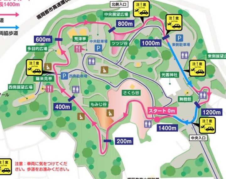 大濠公園の周回コースは、平坦で幅広い道が特徴です。周囲には美しい池や木々があり、四季折々の風景を楽しめます。また、運動を目的とした人々だけでなく、家族連れや観光客も多く見られます。公園のコースの利用者は、健康維持やリラクゼーションを目的にしていることが多いです。