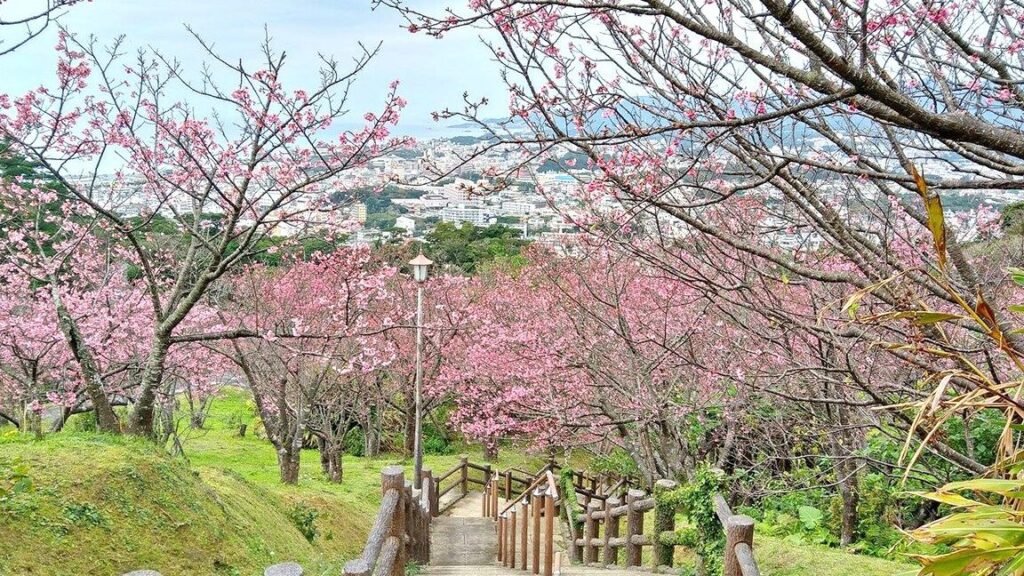 なんぐすく公園の魅力は、その美しい桜の景観にあります。公園内に咲く桜は、訪れる人々に感動と安らぎを与えます。