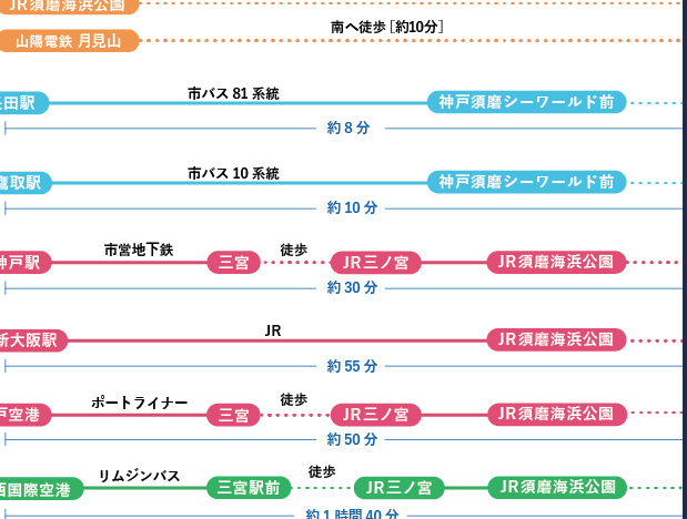また、歩行時間は個々のペースや休憩によって変わりますが、周囲の魅力を感じながらの移動は、訪問者にとって特別な体験となるでしょう。私たちもこの道を歩くことで、須磨の自然や文化を存分に楽しめることを確信しています。次回の訪問時には、ぜひこのルートを選んでみてください。