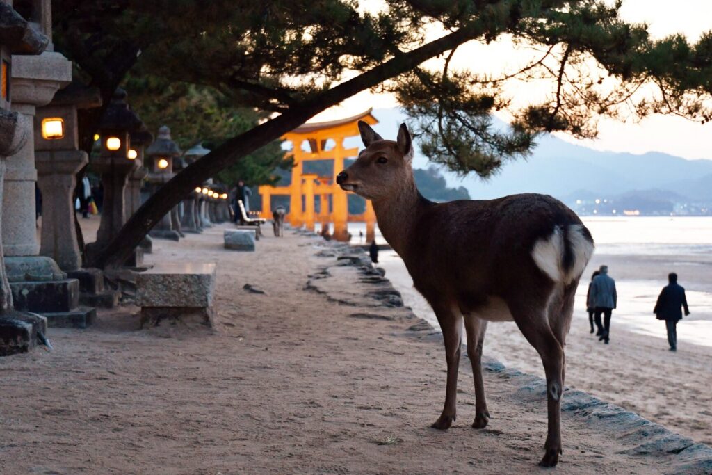 奈良は、古代日本の中心地であり、多くの神社や寺が立ち並ぶ場所です。ここで、鹿は神の使いと見なされ、聖なる生き物として尊重されてきました。特に東大寺や春日大社では、鹿の存在が神聖視され、今なお保護されています。鹿が草食性動物であることから、周囲の自然環境と共生する関係が築かれています。この地域の豊かな緑と自然が、鹿が生きるのに適した環境を提供しています。