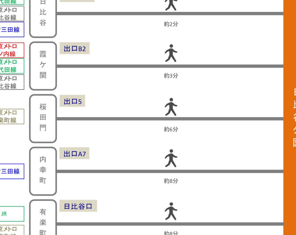 - 霞ヶ関駅: 東京メトロ丸ノ内線と日比谷線が接続。徒歩で約7分の距離。