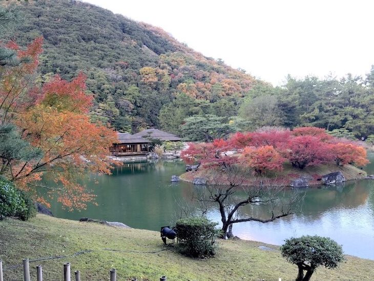 栗林公園には、美しい紅葉を楽しむためのスポットが点在しています。特に、おすすめの観賞ポイントを以下に挙げます。