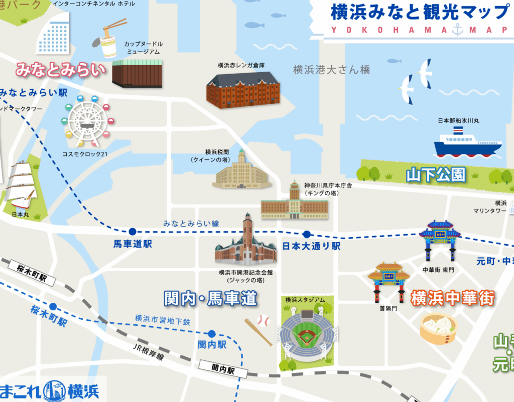 みなとみらいエリアは、山下公園から徒歩圏内に位置しています。この地区では、以下のような観光名所が楽しめます。