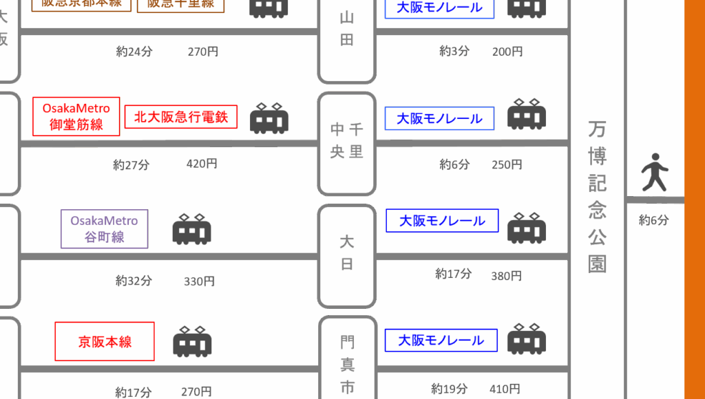 万博記念公園からエキスポシティまでのアクセス