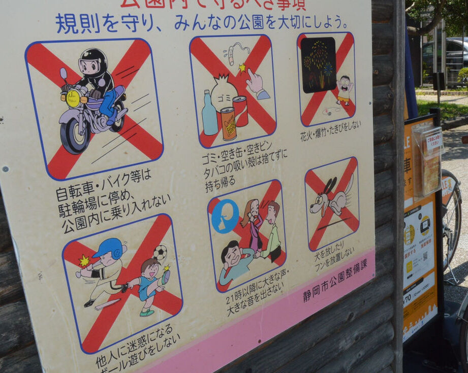 公園では、さまざまな禁止事項が設定されている。主なものには、以下のような項目がある: