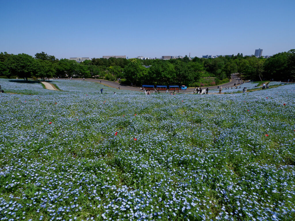 昭和記念公園は、東京都立川市に位置し、多様な自然景観を楽しめる場所です。特に春には、ネモフィラの青い花々が一面に広がり、訪れる人々を魅了します。この美しい風景は、毎年多くの観光客や地元住民を引き寄せます。