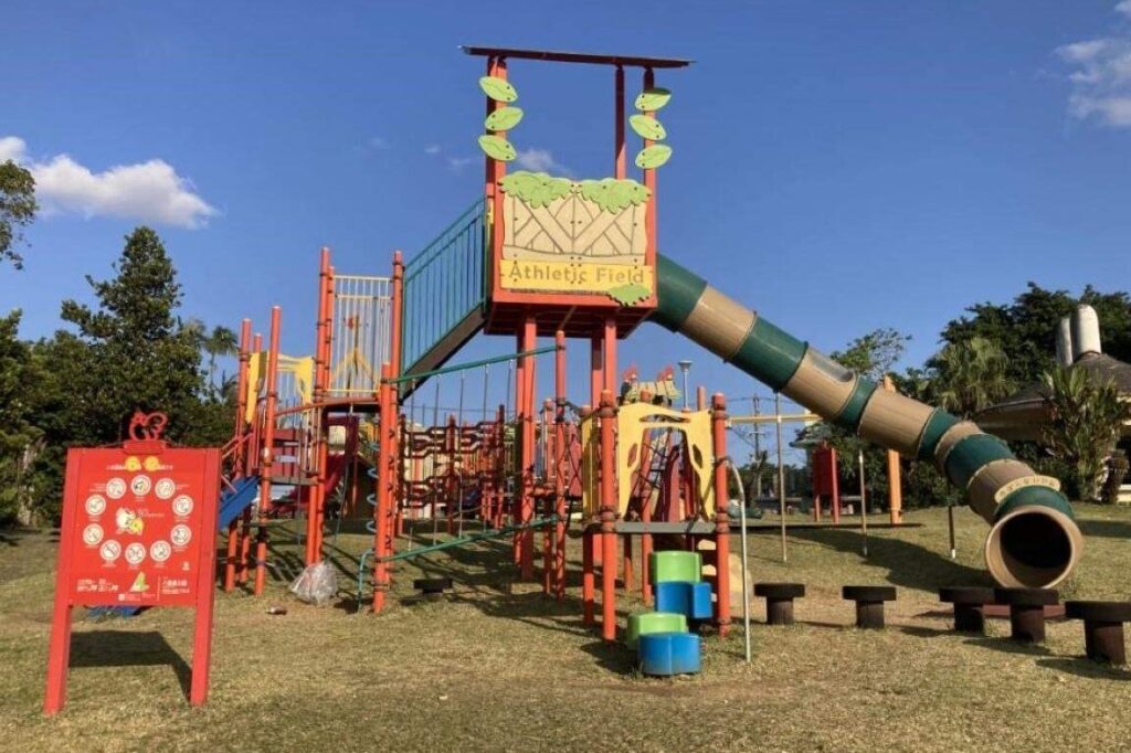 公園の遊具エリアは 子供たちの安全と楽しさを考慮して設計されています。滑り台やブランコ、ジャングルジムなど、多彩な遊具が揃っています。特に人気のある滑り台は、色とりどりで目を引き、大勢の子供たちが楽しんでいます。また、遊具周辺には 柔らかいクッション材が敷かれ ているため、小さなお子さんも安心して遊ぶことができます。