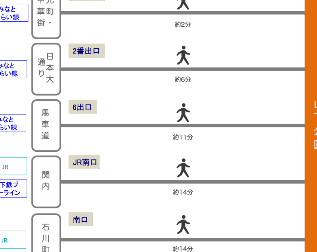 | 関内駅 | – | 約1.2km | 徒歩またはバス利用 |