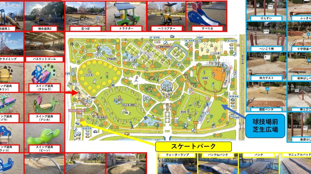 - メインストリート: 入口から続く主要な道で、遊具施設やベンチが点在しており、家族連れに人気。