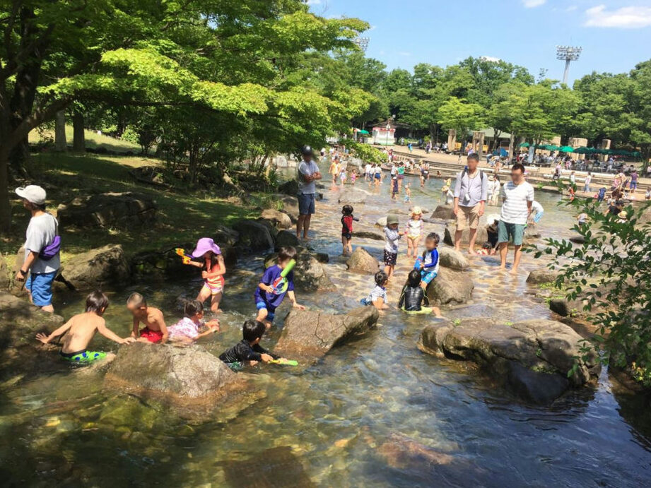 府中郷土の森公園では、子どもたちが安全に楽しく水遊びできるように、さまざまな設備と安全対策が整っています。