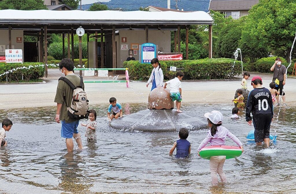おおね公園のじゃぶじゃぶ池は、家族連れに人気の水遊び場です。ここでは子どもたちが楽しく遊びながら、涼しさを感じることができます。