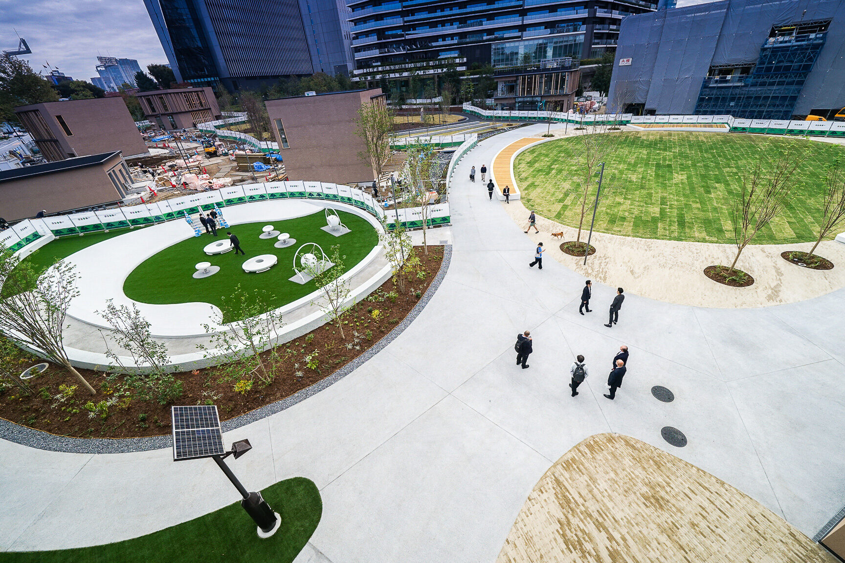 まちの広場と子供の遊び場からなる山下町公園内の憩いの場とは