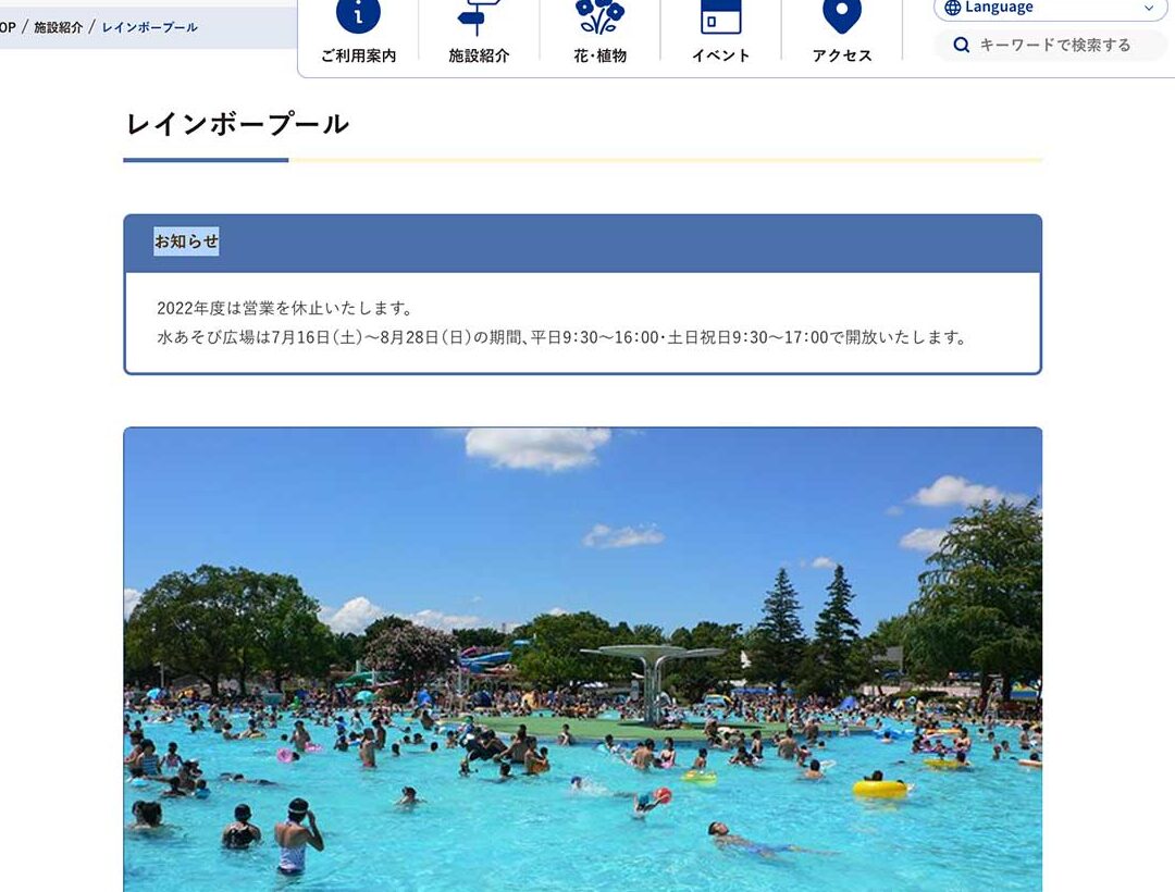 昭和記念公園プールのオープン日と利用情報