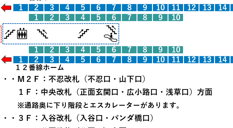 上野駅公園口へのアクセスと上野東京ラインの号車情報
